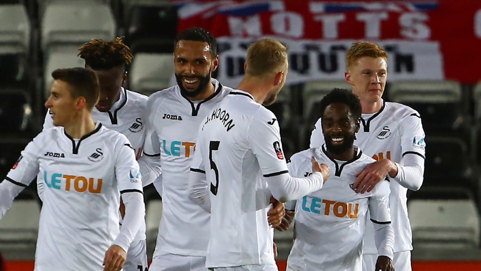 Swans: Kristoffer Nordfeldt, Kyle Naughton, Mike van der Hoorn (Adnan Maric, 78), Kyle Bartley (capt), Luciano Narsingh, Tom Carroll, Sam Clucas (Ki Sung-Yueng, ht), Connor Roberts, Nathan Dyer (Daniel James, 62), Wayne Routledge, Tammy Abraham.