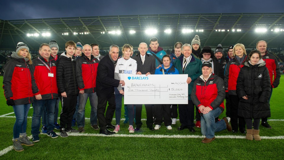 The Swansea City Bravehearts football team took centre stage at the Liberty Stadium recently to receive a cheque for £5,000 from the Swans and the club’s Executive Fundraising Committee, who raised the money through their popular club dinners.