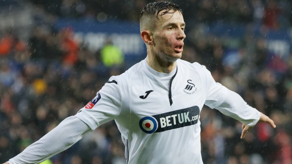 Bersant Celina's wonderful finish of a flowing team move against Manchester City has been voted Swansea City's Goal of the Month for March.