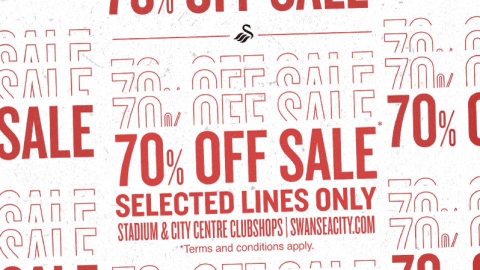 Selected replica, training wear, travel wear and accessories have been reduced at our Liberty Stadium and City Centre Club Shops, as well as online at www.store.swanseacity.com.