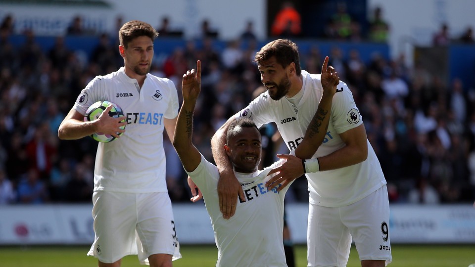 Gylfi Sigurdsson – also playing his final game for the club before his summer departure to Everton – floated in a free-kick that Llorente nodded across the area for Ayew to tuck home.