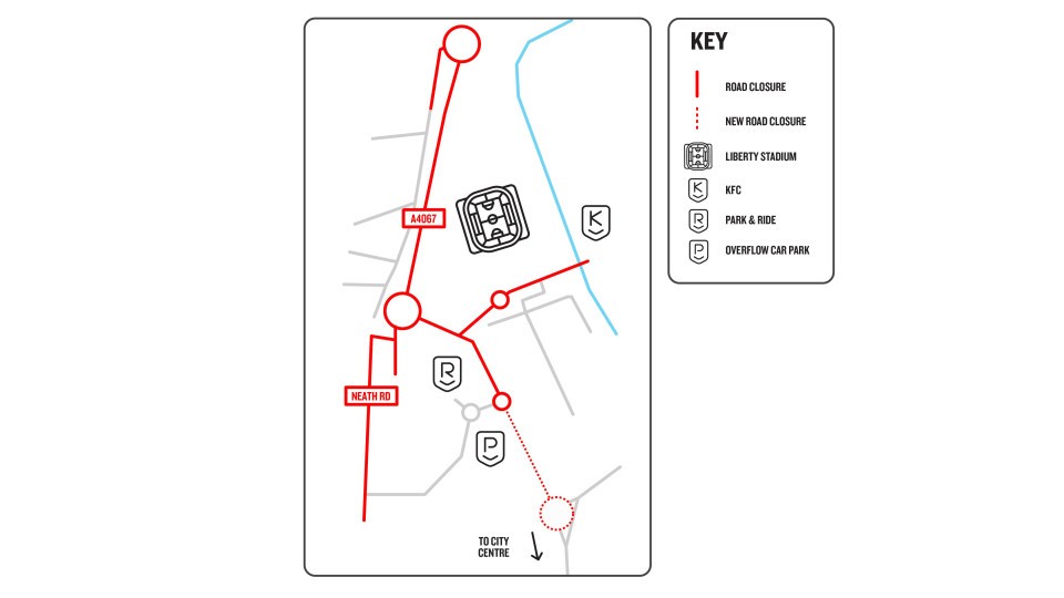 Supporters are reminded of the road closure that is still in place for this season after the game of up to 40 minutes. The Liberty Stadium car parks will close 15 minutes prior to kick-off, as normal. No entry to the car parks will be permitted after 7:30pm.