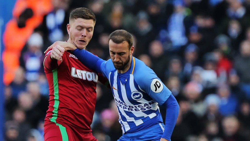 The Swans' 10-game unbeaten run came to an end as relegation rivals Brighton sealed a convincing victory at the Amex Stadium.