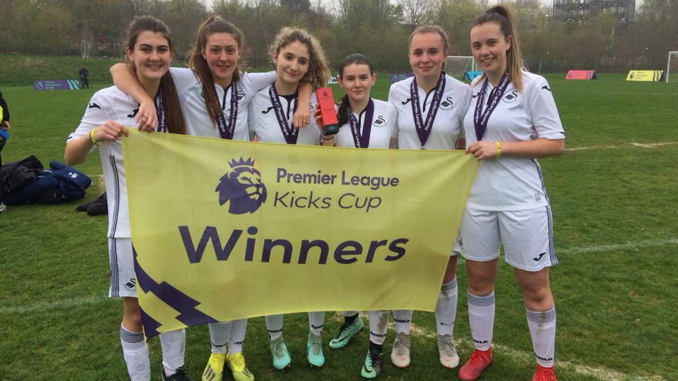 The Swans Community Trust lifted the girls' tournament trophy at this year's Premier League Kicks Cup in Warwick.