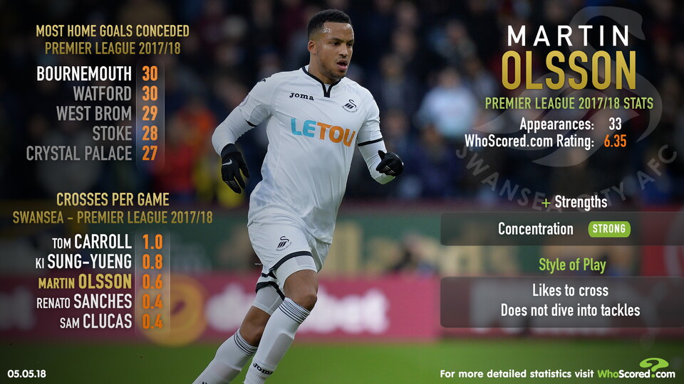 Football stats experts WhoScored.com focus on Martin Olsson ahead of Swansea City's clash with Blackburn Rovers tonight (7.45pm).