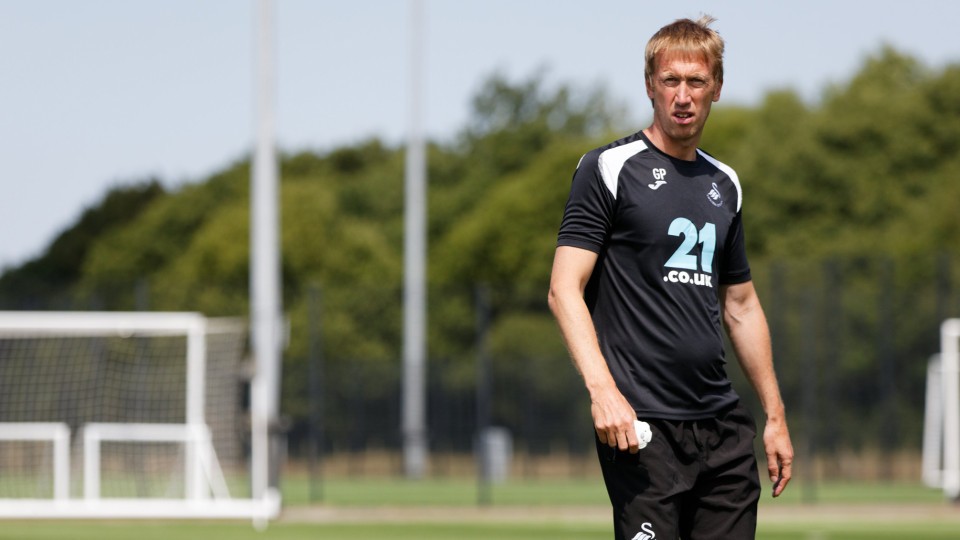Go behind the scenes at the training ground as Graham Potter holds his first training session as Swansea City boss.